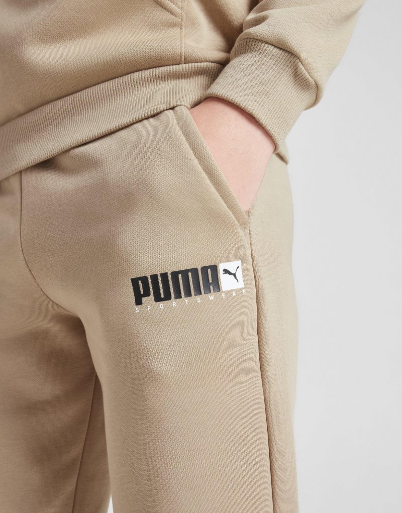 Lehn dich lässig zurück mit der PUMA Sportswear Essential Jogginghose für Kinder. Diese JD-exklusive Hose ist in der Farbe Stone gehalten, besteht aus einer flauschigen Baumwollmischung und bietet absoluten Tragekomfort. Zudem verfügt sie über einen mit Kordelzug verstellbaren Bund, Bündchen am Beinende und offene Seitentaschen. Abgerundet wird das Design durch ein kontrastierendes PUMA-Logo auf dem linken Hosenbein. Waschmaschinengeeignet.