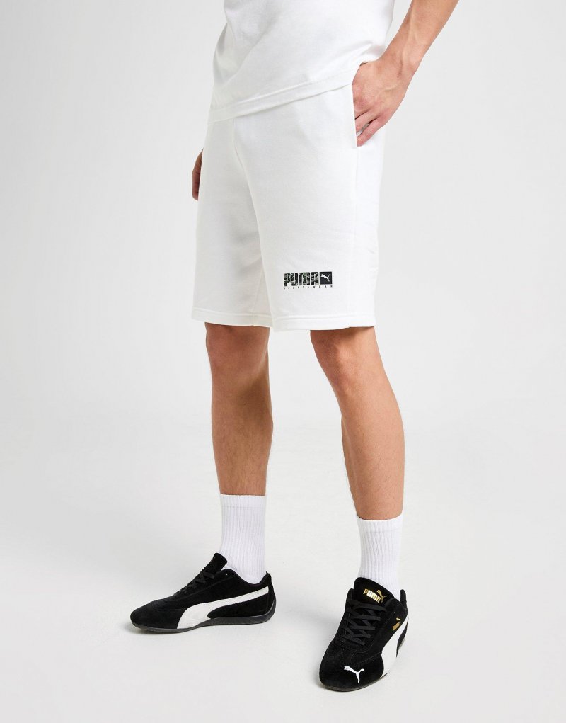 DIESES PRODUKT IST TEIL UNSERES 2 FÜR 40€ ANGEBOTS. DAS ANGEBOT GILT AUTOMATISCH, WENN DU ZWEI QUALIFIZIERTE ARTIKEL IN DEINEN WARENKORB LEGST. Erfrischen Sie Ihre Alltagsgarderobe mit diesen Herren-Sportshorts von PUMA. Die JD-exklusiven Shorts in Weiß sind aus weichem Baumwoll-Mischfleece gefertigt und bieten höchsten Tragekomfort. Sie verfügen über einen elastischen Bund mit Kordelzug zur individuellen Anpassung und Seitentaschen für Ihre wichtigsten Utensilien. Abgerundet wird das Design durch das PUMA Sportswear-Branding im Camouflage-Print über dem Saum. Maschinenwaschbar. | Unser Model ist 1,88 m groß und trägt Größe M.