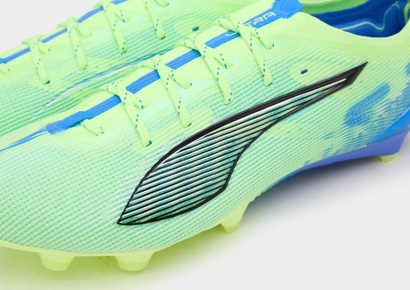 Gib auf dem Platz dein Bestes mit diesen PUMA ULTRA 5 Ultimate FG Fußballschuhen für Herren. Die Schuhe sind in der Farbe Fizzy Apple gehalten und besitzen ein Obermaterial aus atmungsaktivem Mesh und Synthetik, das teilweise recycelt und strukturiert ist, um präzisere Schüsse zu ermöglichen. Sie verfügen über einen Schnürverschluss und eine gepolsterte OrthoLite-Ferse für sicheren Halt, während eine herausnehmbare NanoGrip-Einlegesohle verhindert, dass der Fuß verrutscht. Der PWRTAPE SQD-Rahmen sorgt für Stabilität und die SPEEDSYSTEM-Außensohle bietet in Kombination mit den FastTrax-Stollen maximalen Grip und Beschleunigung. Abgerundet wird das Design durch das klassische Logo und den ikonischen Formstrip von PUMA .