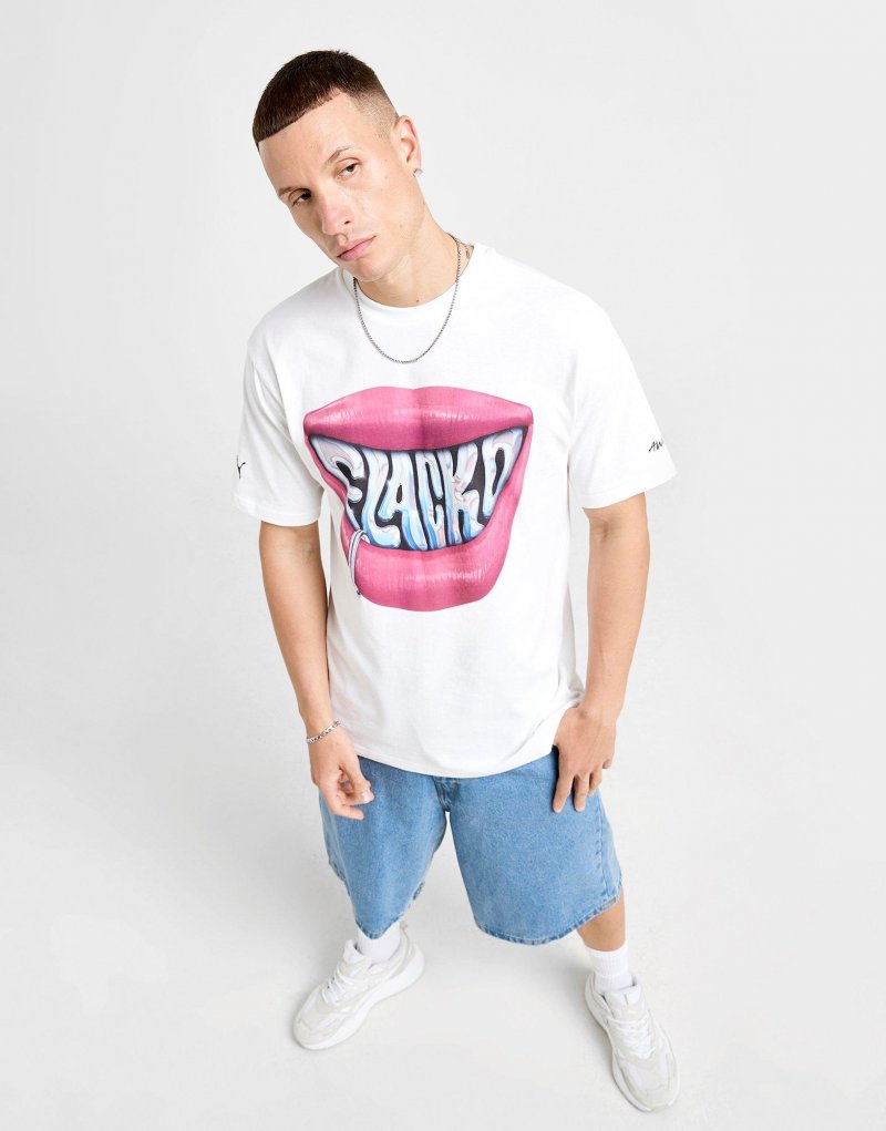 Ob auf der Straße oder auf dem Sofa – peppe deine Freizeitlooks mit diesem PUMA x A$AP Rocky Smile T-Shirt für Herren auf. Das kastige T-Shirt in Weiß ist aus weichem, schwerem Jersey gefertigt und sorgt für langanhaltenden Tragekomfort. Der Rundhalsausschnitt und die kurzen Ärmel sorgen für ein bequemes Tragegefühl und sind mit einem auffälligen Grafik-Branding auf der Brust versehen. Maschinenwaschbar. | Unser Model trägt Größe M.