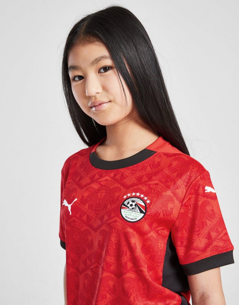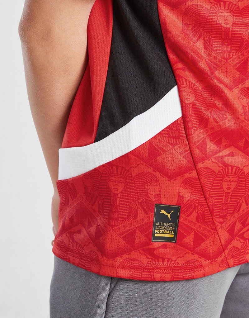 Mit dem Ägypten 2025 Heim Kinder-Shirt von PUMA bringst du dein Fan-Outfit auf ein neues Level. Dieses Standard-Fit Oberteil in Rot ist aus leichtem, atmungsaktivem Polyester gefertigt und bietet jederzeit kühlen Tragekomfort. Es ist mit der dryCELL-Technologie ausgestattet, um Schweiß abzuleiten, während die kurzen Ärmel und der gerippte Rundhalsausschnitt für einen klassischen Look sorgen. Abgerundet wird das Ganze durch das PUMA-Logo und das ägyptischen Wappen auf der Brust sowie einem All-Over-Print mit ikonischen ägyptischen Symbolen. Waschmaschinengeeignet.