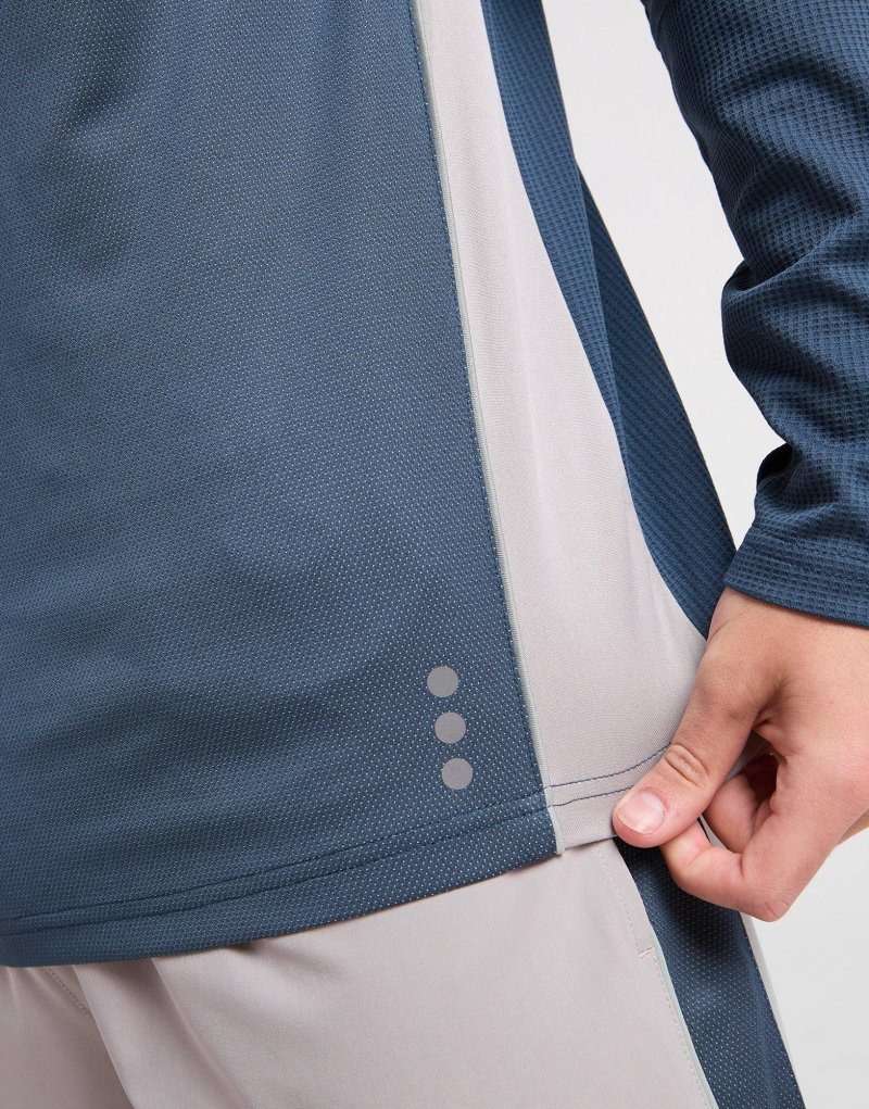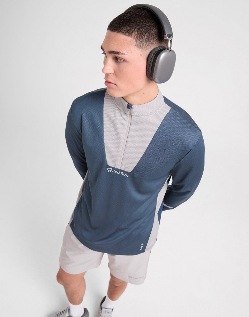 Du suchst einen vielseitigen Look fürs Training und entspannte Stunden? Red Run hat genau das Richtige für dich: das Tech Power 1/4 Zip Top für Herren. Im Farbblockdesign in Marineblau und Hellgrau besteht dieses leichte Top aus einem Mix aus glattem und gestricktem Polyestergewebe, das sich deiner Körperform anpasst und gleichzeitig uneingeschränkte Bewegungsfreiheit bietet. Der Viertelreißverschluss und der Stehkragen sorgen für individuelle Bewegungsfreiheit. Abgerundet wird das Top durch reflektierende Elemente und das charakteristische Red Run Logo. Maschinenwaschbar. | Unser Model trägt Größe M.