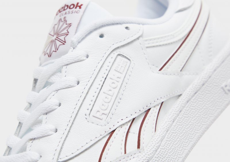 Fügen Sie Ihrer Sammlung mit diesen Club C Revenge-Sneakern für Herren von Reebok ein JD-Exklusivprodukt hinzu. Diese Sneaker in Weiß haben ein strapazierfähiges Obermaterial aus Leder und eine herausnehmbare Einlegesohle aus EVA-Schaum. Sie sitzen über einer gestanzten EVA-Zwischensohle für leichte Dämpfung, während die Gummilaufsohle für Halt sorgt. Diese von den 80ern inspirierten Sneaker sind mit einem kastanienbraunen Reebok-Branding an den Seitenwänden, der Zunge und der Ferse versehen.