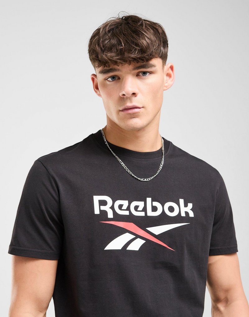 Mit dem Reebok Cray T-Shirt für Herren bringst du frische Energie in deinen Look. Dieses JD-exklusive Oberteil in Schwarz besteht aus weicher, leichter Baumwolle und bietet maximalen Komfort. Es verfügt über einen gerippten Rundhalsausschnitt und kurze Ärmel für einen zeitlosen Look, während ein auffälliges Reebok-Logo auf der Brust platziert ist. Waschmaschinengeeignet. Unser Model ist 1,88 m groß, hat einen Brustumfang von 94 cm und trägt Größe M.