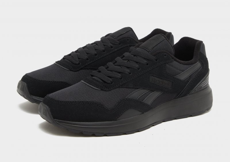 Exklusiv bei JD. Mit diesen GL1100-Turnschuhen für Herren von Reebok tauchen Sie in einen vom Laufsport inspirierten Stil ein. Diese komplett schwarzen Sneaker orientieren sich an den Archiven und haben eine Obermaterialmischung aus Mesh, Kunstleder und Wildleder. Sie verfügen über ein Textilfutter sowie einen gepolsterten Knöchelkragen und eine gepolsterte Zunge. Unter den Füßen fühlt sich die weiche EVA-Zwischensohle leicht an, da sie jeden Schritt abfedert. Abgerundet durch eine flache Gummilaufsohle und durchgehendes, farblich abgestimmtes Reebok-Branding.