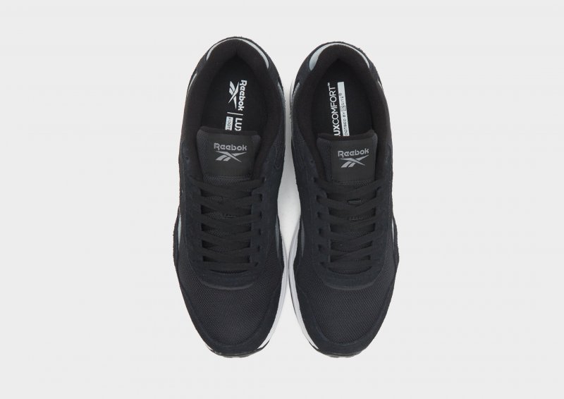 Gehen Sie mit Stil aus mit diesen GL1100-Sneakern für Herren von Reebok. Diese exklusiven JD-Sneaker in den Farben Schwarz, Weiß und Grau sind aus atmungsaktivem Textil mit Leder- und Synthetiküberzügen gefertigt. Sie verfügen über einen Schnürverschluss, der Sie sicher festhält, einen gepolsterten Schaft für Halt und eine Luxcomfort-Einlegesohle für eine bequeme Passform. Unter den Füßen sitzen sie auf einer FuelFoam-Zwischensohle für ein sanftes Laufgefühl und eine griffige Gummilaufsohle für Traktion. Abgerundet mit dem klassischen Reebok-Branding.