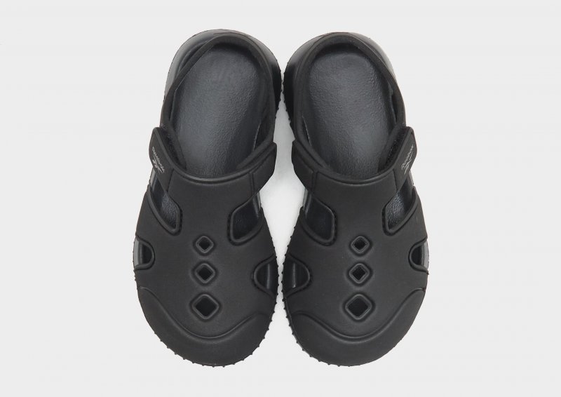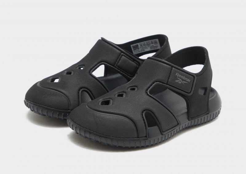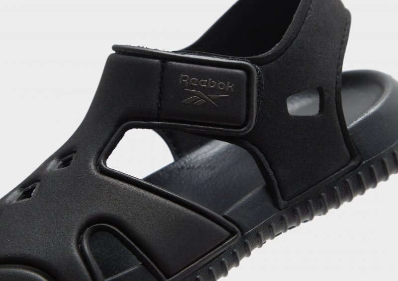 Machen Sie sie bereit für die Sonne mit diesen Sunkissed-Sandalen für Kleinkinder von Reebok. Diese Sandalen in Schwarz sind aus glattem Synthetikmaterial gefertigt und sorgen für lange Haltbarkeit. Sie verfügen über einen Klettverschluss, um sie festzuhalten, ein geformtes Fußbett für eine bequeme Passform und eine Gummilaufsohle für Traktion. Abgerundet mit dem charakteristischen Reebok-Branding.