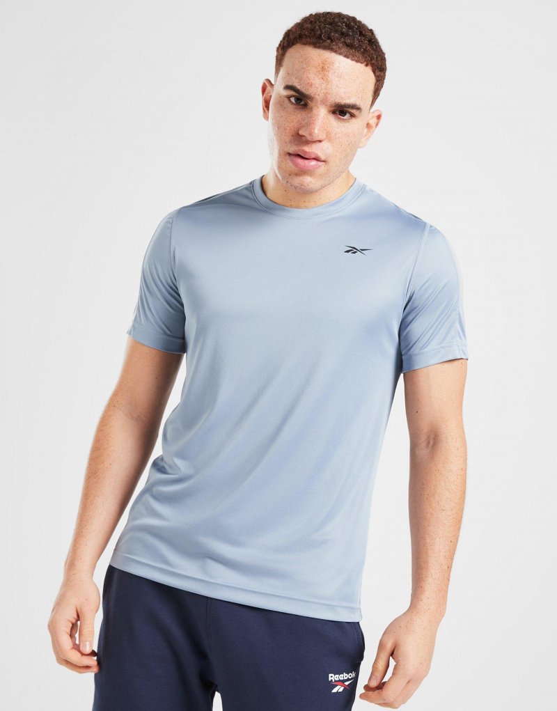 Zeit für neue Trainingsausstattung mit dem Tech Herren-T-Shirt von Reebok. Dieses Standard-Fit Oberteil in Hellblau ist aus glattem, leichtem Polyestergewebe gefertigt und bietet maximalen Komfort. Es ist mit Speedwick-Technologie ausgestattet, um dich kühl und trocken zu halten, während der klassische Rundhalsausschnitt und die kurzen Ärmel ein angenehmes Tragegefühl sicherstellen. Abgerundet wird das Design durch das klassische Reebok-Logo auf der Brust. Waschmaschinengeeignet. Unser Model ist 1,83 m groß, hat einen Brustumfang von 97 cm und trägt Größe M.