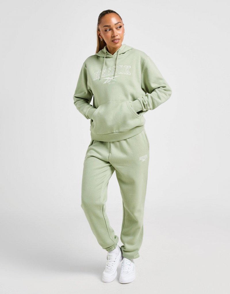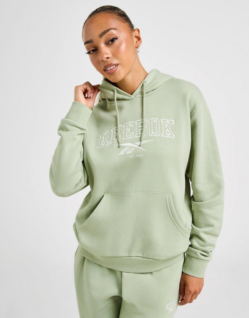 DIESER ARTIKEL IST TEIL UNSERES 2 FÜR 70€ ANGEBOTS. DAS ANGEBOT GILT AUTOMATISCH, WENN DU ZWEI QUALIFIZIERTE ARTIKEL IN DEINEN WARENKORB LEGST. Mit diesem Damen Varsity Overhead Hoodie von Reebok können Sie es dezent angehen. Dieser JD-exklusive Pullover in der Farbe „Sage“ ist aus superweichem, gebürstetem Fleece gefertigt und bietet höchsten Tragekomfort. Ein verstellbarer Kordelzug in der Kapuze sorgt für kuscheligen Schutz und elastische Rippbündchen für einen sicheren Sitz. Die Kängurutasche vorne bietet Stauraum und das gestickte Reebok-Logo auf der Brust rundet das Angebot ab. Maschinenwaschbar. | Unser Model ist 1,73 m groß und trägt Größe S.