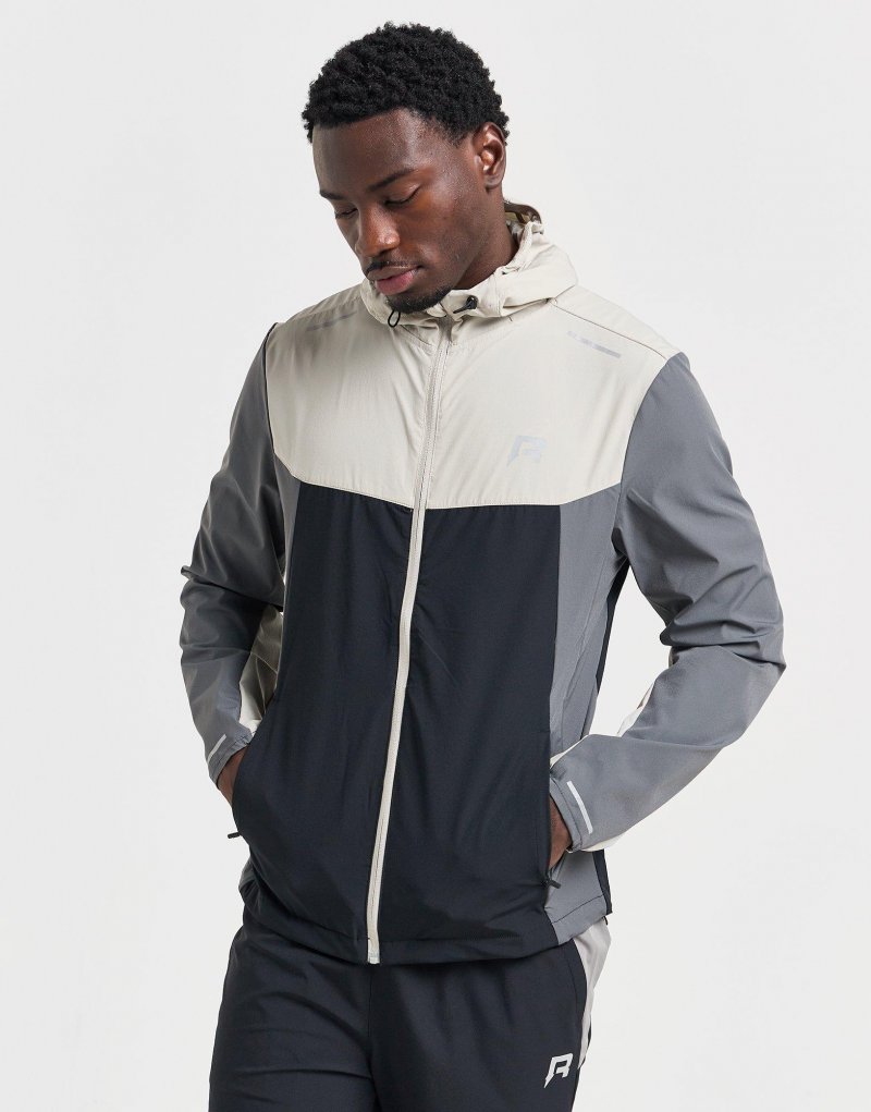 Bewältigen Sie das wechselhafte Wetter mit Hilfe von REPRIMO in dieser Flight Windrunner-Jacke für Herren. Dieser Mantel mit durchgehendem Reißverschluss in einem Farbblockdesign in Grau, Schwarz und Stein hat eine verstellbare Kordel an der Kapuze, Reißverschlusstaschen und reflektierende Details. Er besteht aus leichtem, dehnbarem Gewebe mit einem Paneeldesign, das die Luftzirkulation gewährleistet. Abgerundet mit dem charakteristischen REPRIMO-Branding. Maschinenwaschbar. | Unser Model ist 1,83 m groß, hat einen Brustumfang von 91 cm und trägt Größe M.