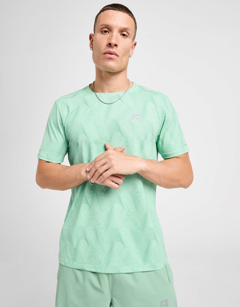Optimiere deinen Trainings-Look mit dem Reprimo Ripple All Over Print T-Shirt für Herren. Dieses Standard-Fit Oberteil in Grün besteht aus einem leichten, dehnbaren Stoff und bietet maximalen Komfort. Es verfügt über einen gerippten Rundhalsausschnitt und kurze Ärmel für einen zeitlosen Look, während reflektierende Elemente deine Sichtbarkeit bei schlechten Lichtverhältnissen optmieren. Abgerundet wird das Design durch das klassische R-Logo auf der Brust. Waschmaschinengeeignet. Unser Model ist 1,83 m groß, hat einen Brustumfang von 99 cm und trägt Größe M.