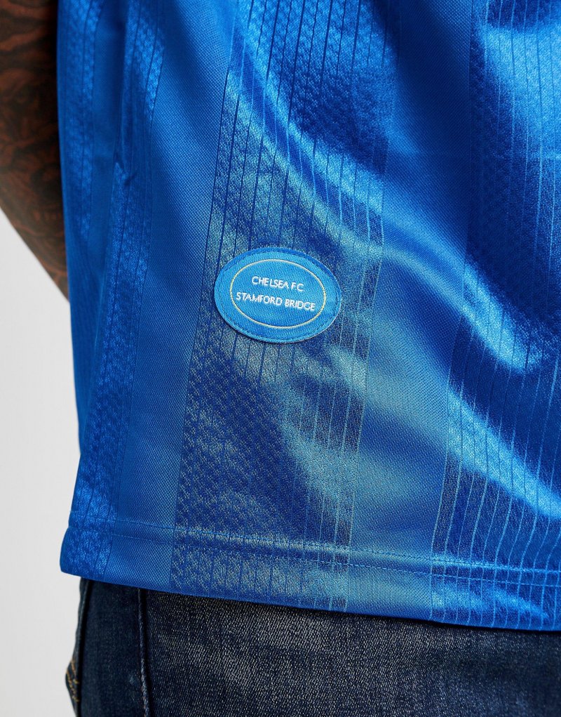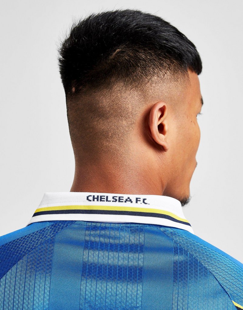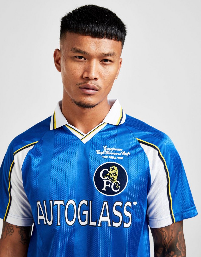 Mit dem Chelsea FC '98 Heim Herren-Shirt von Score Draw kannst du zeigen, welches Team du feierst. Dieses Regular-Fit Oberteil ist in Blau gehalten und mit weißen, schwarzen sowie gelben Streifen versehen. Es besteht aus einem leichten Polyestergewebe und sorgt für maximalen Tragekomfort. Außerdem verfügt es über kurze Ärmel und einen V-Ausschnitt für die Retro-Vibes, während das legendäre CFC-Wappen auf der Brust platziert ist. Unser Model ist 1,83 m groß und trägt Größe M.