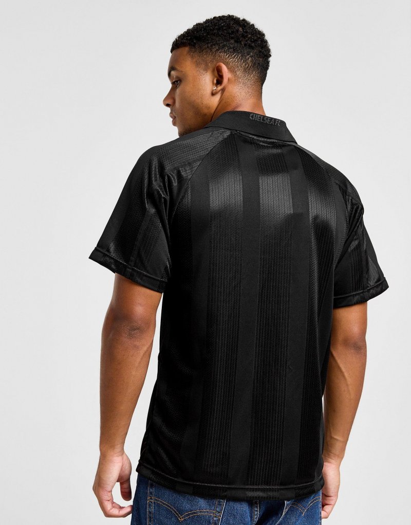 Zeig deinen Support von den Tribünen der Stamford Bridge bis zu den Straßen Londons mit dem Chelsea FC '98 Retro Blackout Herren-Shirt von Score Draw. Dieses Old-School-Shirt ist in Schwarz gehalten und mit einem farblich abgestimmten Streifendesign versehen. Es besteht aus glattem Polyknit-Gewebe und sorgt für absoluten Tragekomfort. Außerdem verfügt es über einen V-Ausschnitt mit umklappbarem, geripptem Kragen. Abgerundet wird das Design durch farblich abgestimmtes Sponsoring und das klassische Chelsea-Wappen auf der Brust. Waschmaschinengeeignet. Unser Model ist 1,85 m groß, hat einen Brustumfang von 99 cm und trägt Größe M.