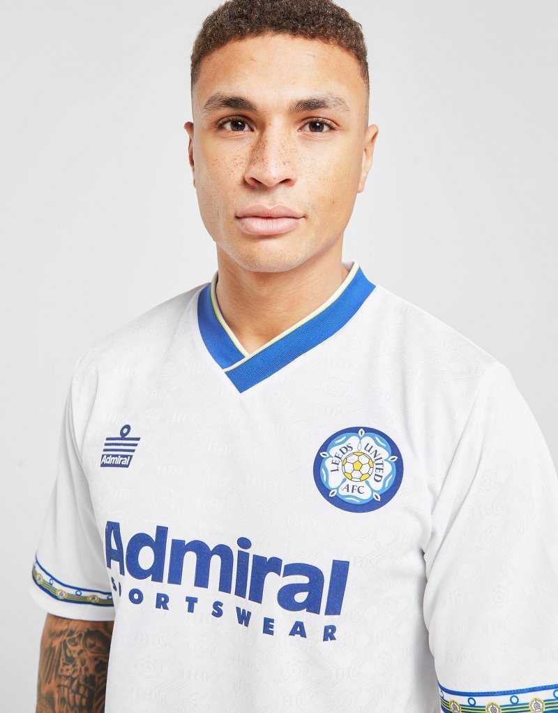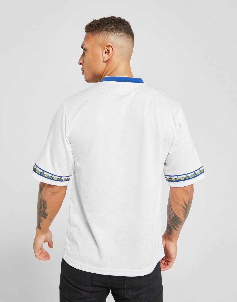 Bring die Retro-Vibes in dein Fan-Outift mit dem Leeds United '93 Heim Herren-Shirt von Score Draw. Dieses Loose-Fit Oberteil in Weiß ist mit blauen Akzenten versehen und besteht aus weichem Polyester, um maximalen Komfort zu gewährleisten. Die kurzen, überschnittenen Ärmel und der V-Ausschnitt erzeugen einen klassischen Fußball-Look, während das ikonische Vereinswappen von Leeds United das Design abrundet. Waschmaschinengeeignet. Unser Model ist 1,85 m groß, hat einen Brustumfang von 99 cm und trägt Größe M.