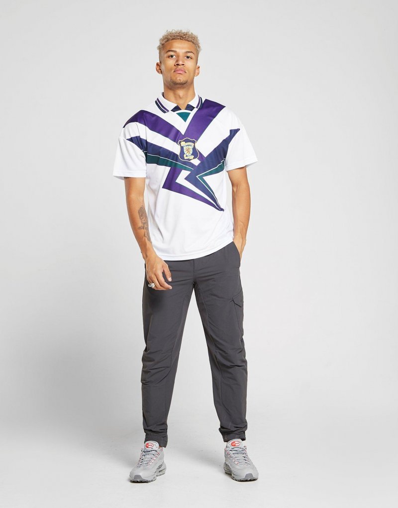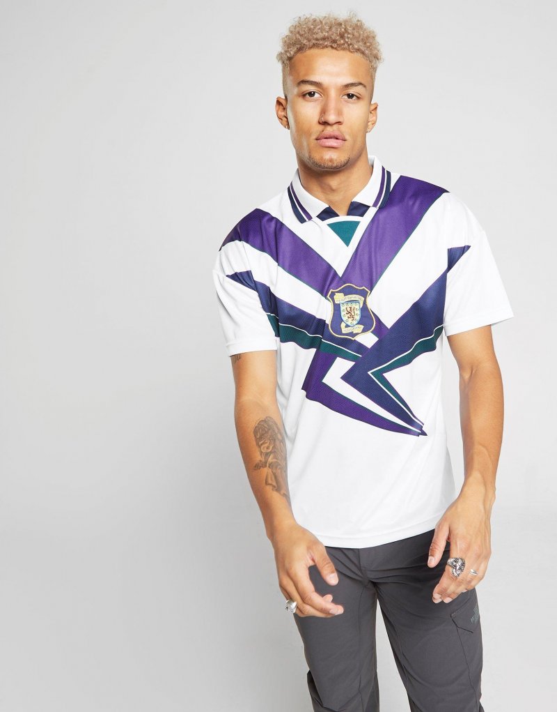 Hol dir den Retro-Look in deinen Kleiderschrank mit diesem Scotland '96 Away Shirt für Herren von Score Draw. Farblich in Weiß gehalten, ist das Shirt aus einem weichen und leichten Polyester Material gefertigt. Das Shirt ist zum Abschluss mit einem Scotland Wappen auf der Brust versehen. Unser Model ist 183cm groß und trägt Größe M.