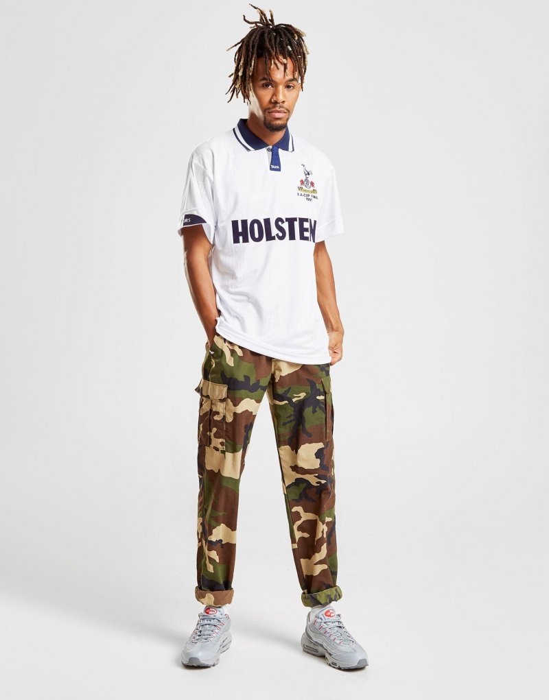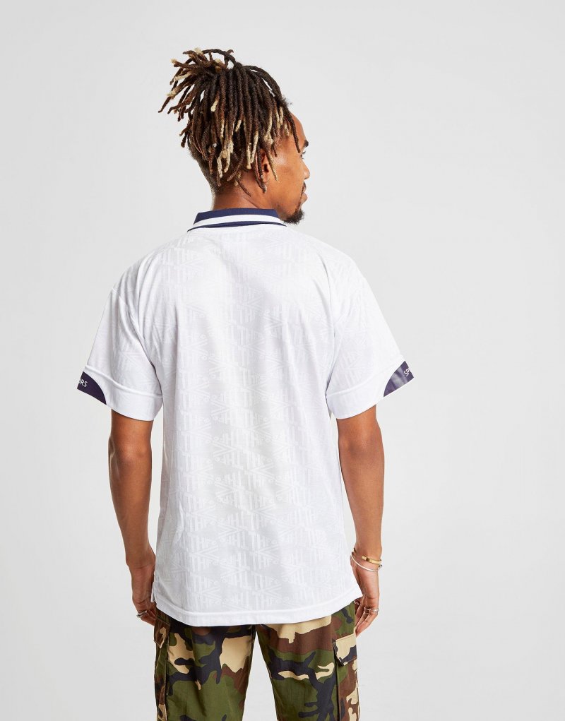 Aus den Archiven genommen, feiert dieses Herren Tottenham Hotspur '91 Heimat Shirt von Score Draw den 1991 FA Cup Sieg der Mannschaft. In einer scharfen weißen Farbe, bietet das Hemd einen gespreizten Kragen, eine Knopfleiste und kurze Ärmel. Das leichte Trikot ist mit Umbro Branding und dem kultigen Club Wappen fertig. | Unser Modell ist 1m 88cm hoch und trägt eine Größe Medium.
