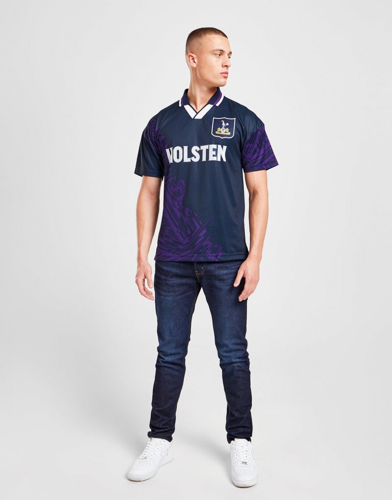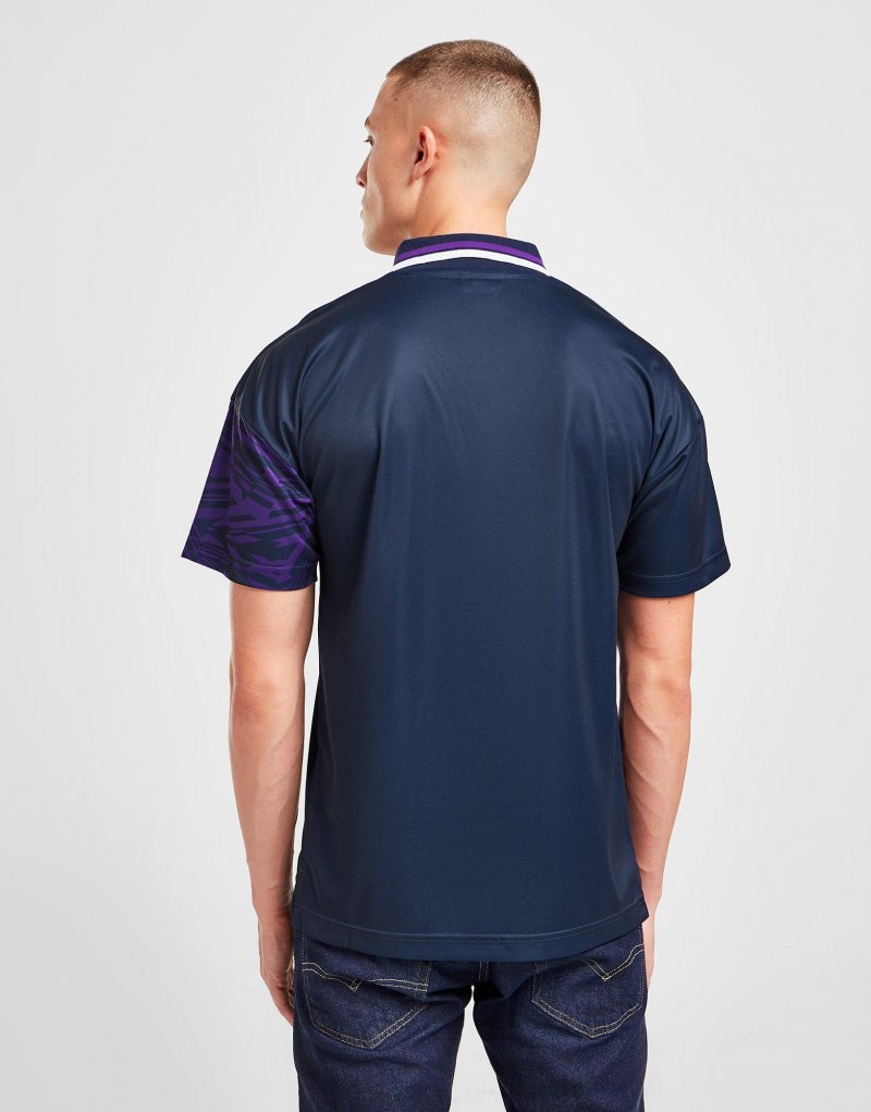 Von Klinsmann und Sheringham getragen, wurde dieses Herren Tottenham Hotspur '94 Away Shirt von Score Draw aus dem Archiv zurückgebracht. In einer marineblau und violetten Farbkombination, bietet das Retro-Shirt einen offenen Kragen und kurze Ärmel. Das Vintage-inspirierte Trikot ist aus leichtem Stoff hergestellt und mit dem kultigen Abzeichen, das auf die Brust gestickt ist fertig. | Unser Modell ist 1m 88cm hoch und trägt eine Größe Medium.