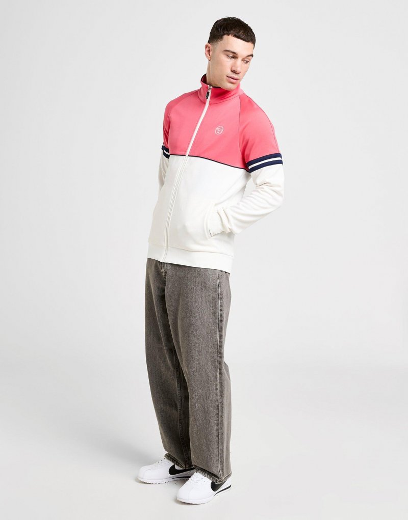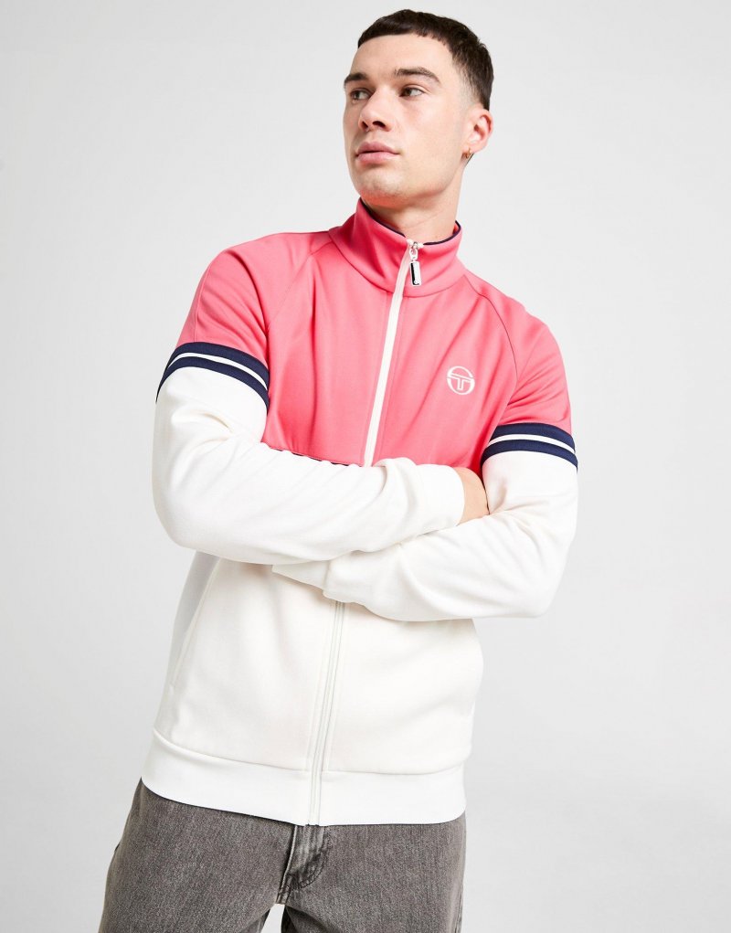 Bringen Sie den 80er-Jahre-Stil zurück mit diesem Orion Trainingstop für Herren von Sergio Tacchini. Im Farbblockdesign in Lachs und Ecru mit marineblauen Streifen ist dieses Oberteil mit durchgehendem Reißverschluss aus glattem Polyester-Strickgewebe gefertigt und eignet sich ideal zum Überziehen. Es verfügt über einen Stehkragen, gerippte Abschlüsse und Raglanärmel. Abgerundet wird das Design durch Seitentaschen und das aufgestickte Sergio Tacchini-Logo auf der Brust. Maschinenwaschbar. | Unser Model ist 1,83 m groß, hat einen Brustumfang von 89 cm und trägt Größe M.