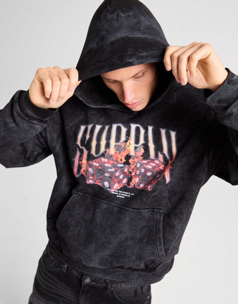 Upgrade deinen Look mit dem Supply & Demand Fire Dice Hoodie für Herren. Dieser JD-exklusive Hoodie ist in Schwarz gehalten und besteht aus weichem Baumwollfleece und bietet maximalen Komfort im Alltag. Er verfügt über ein klasisches Pullover-Design, eine verstellbare Kapuze und gerippte Bündchen, um die Passform zu optimieren. Eine Kängurutasche ermöglicht eine einfache Aufbewahrung und ein grafisches S&D-Logo befindet sich auf der Brust. Waschmaschinengeeignet. Unser Model ist 1,83 m groß, hat einen Brustumfang von 99 cm und trägt Größe M.