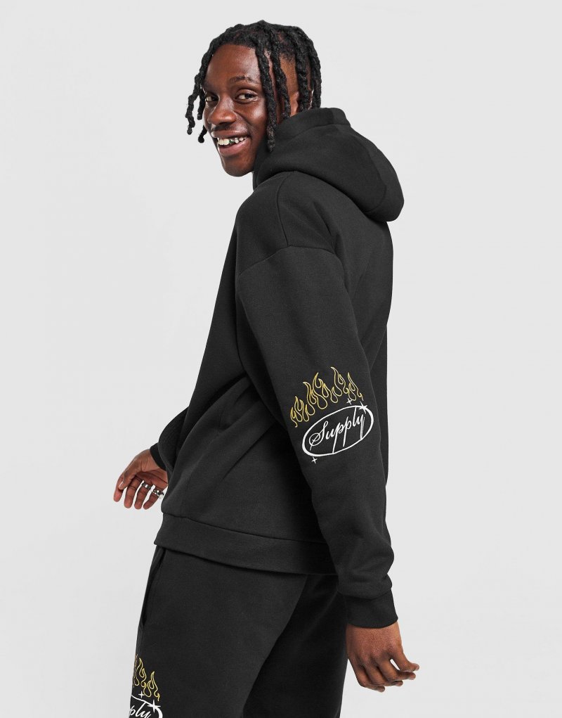 Bring ein neues Highlight in deinen Streetstyle mit diesem Pittsburgh Herren-Hoodie von Supply & Demand. Dieser JD-exklusive Hoodie ist in Schwarz gehalten und aus einem Baumwollmischgewebe geschnitten, das für dauerhaften Komfort sorgt. Er verfügt über lange Ärmel und eine feste Kapuze, während gerippte Bündchen an Saum und Ärmeln eine sichere Passform gewährleisten. Die Kängurutasche auf der Vorderseite eignet sich für eine einfache Aufbewahrung, währendaufgestickte Motive von Supply & Demand auf den Ärmeln und der Vorderseite die Blicke auf sich ziehen. Waschmaschinengeeignet. Unser Model ist 1,83 m groß, hat einen Brustumfang von 89 cm und trägt Größe M.