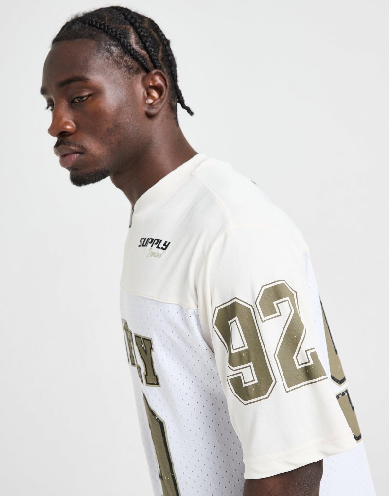 Exklusiv bei JD: Bring sportliche Energie in deine Garderobe mit dem Rucker Herren-T-Shirt von Supply & Demand. Dieses Oberteil besteht aus leichtem, luftigem Mesh, um kühlen Tragekomfort zu gewährleisten. Es ist in Weiß gehalten und besitzt einen gerippten Rundhalsausschnitt sowie kurze Ärmel für einen zeitlosen Look. Ein auffälliges Supply & Demand-Logo in Gold verleiht dem Design einen runden Abschluss. Waschmaschinengeeignet. Unser Model ist 1,85 m groß, hat einen Brustumfang von 91 cm und trägt Größe M.