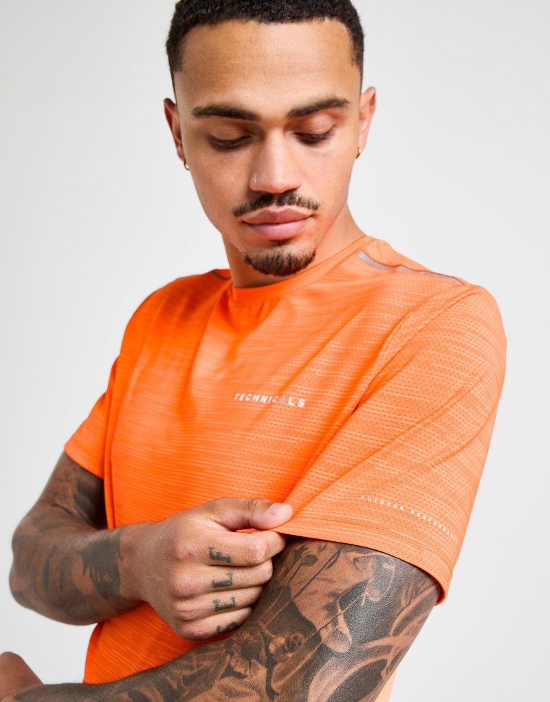 Mit diesem Fleck-T-Shirt für Herren von Technicals fallen Sie auf der Straße und auf dem Berg auf. In der Farbe Exotic Orange hat dieses JD-exklusive T-Shirt reflektierende Details an den Schultern, damit Sie auch bei schlechten Lichtverhältnissen gut gesehen werden. Es besteht aus dehnbarem, perforiertem Stoff und ist mit dem Technical-Schriftzug auf der Brust und dem charakteristischen Logo im Nacken versehen. Maschinenwaschbar. | Unser Model ist 1,85 m groß, hat einen Brustumfang von 92 cm und trägt Größe M.