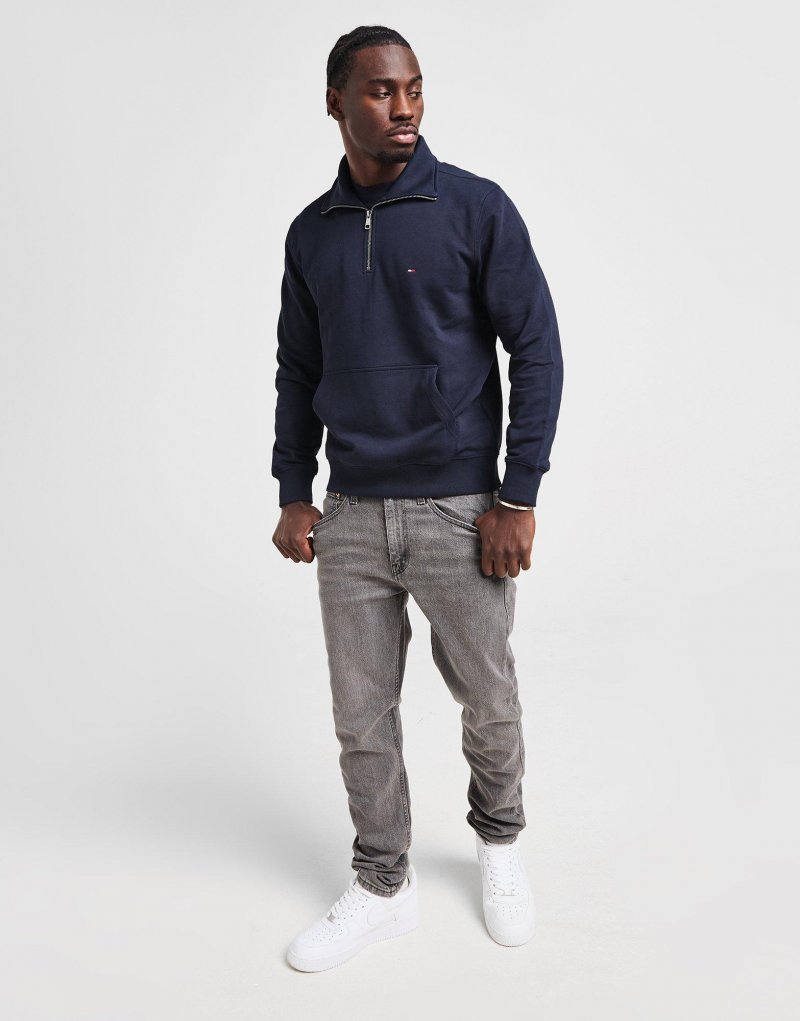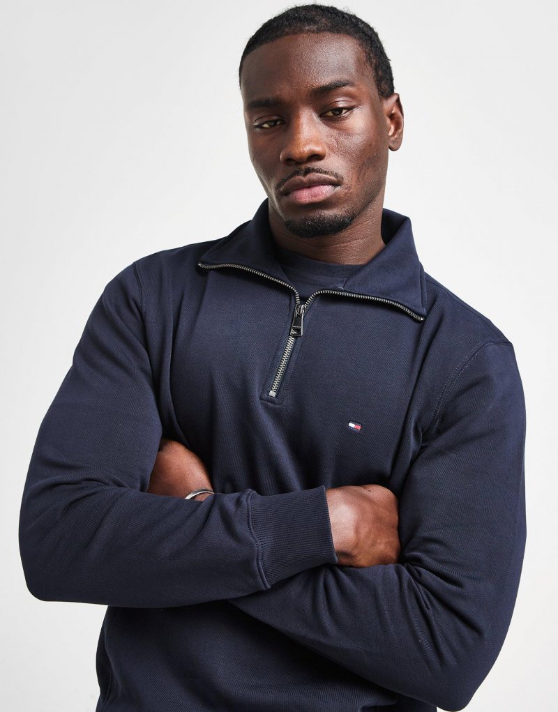 Frischen Sie Ihre Alltagskleidung mit diesem 1/2 Zip Small Flag Sweatshirt für Herren von Tommy Hilfiger auf. Dieses Sweatshirt mit normaler Passform in der Farbe Navy ist aus reinem Baumwollfrottee gefertigt, damit Sie sich wohl fühlen. Es verfügt über einen Stehkragen mit Viertelreißverschluss, der Sie bedeckt, während gerippte Abschlüsse an Saum und Bündchen für einen sicheren Sitz sorgen. Es verfügt über eine Kängurutasche zur Aufbewahrung und ist mit einer gestickten Tommy Hilfiger-Flagge auf der Brust versehen. Maschinenwaschbar. | Unser Model ist 1,85 m groß, hat einen Brustumfang von 91 cm und trägt Größe M.