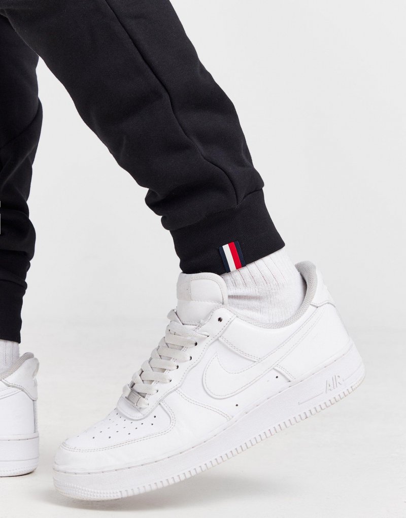 Mit den Tommy Hilfiger Fleece Jogginghose für Herren bringst du Premium-Vibes in deinen Style. Diese JD-exklusive Standard-Fit Hose ist in Schwarz gehalten und besteht aus weichem Fleecestoff für erstklassigen Komfort. Sie ist mit Bündchen am Beinende versehen, um eine stabile Passform zu gewährleisten. Der elastische Bund sorgt für sicheren Halt und die Seitentaschen ermöglichen eine einfache Aufbewahrung. Abgerundet wird das Design durch das gewebten Tommy-Label am Bündchen und das klassische Logo. Waschmaschinengeeignet. Unser Model ist 1,82 m groß und trägt Größe M.