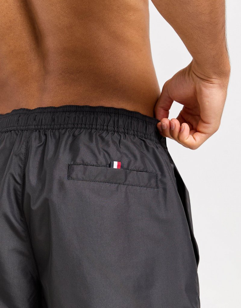 Bereite dich mit diesen Side Logo Herren-Badeshorts von Tommy Hilfiger auf den Tag am Schwimmbad vor. Diese Badeshorts in der Farbe Schwarz bestehen aus einem leichten und atmungsaktiven Recycling-Polygewebe für bequemen Tragekomfort. Sie verfügen über einen elastischen Bund für ein entspanntes Tragegefühl, während Seitentaschen Platz für deine Essentials bieten. Abgerundet wird das Design der Shorts durch das Tommy Hilfiger Logo an der Seite. Waschmaschinengeeignet. Unser Model ist 1,83 m groß und trägt Größe M.