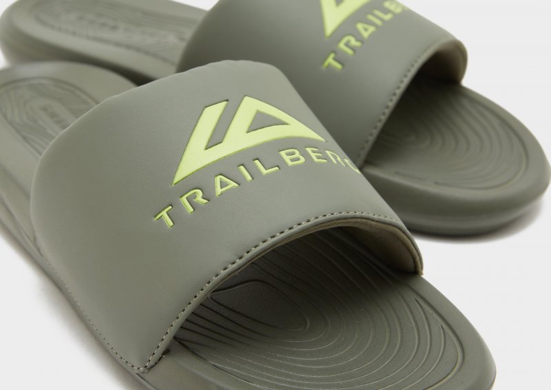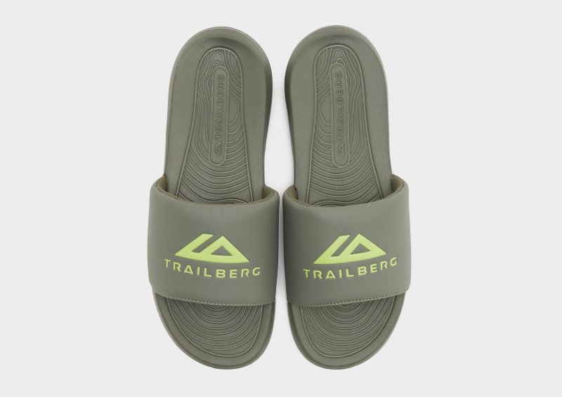 Mit diesen Herren-Slidern von Trailberg sind Sie immer bequem unterwegs. In der Farbe „Pine Dust“ sind diese Slides aus wasserabweisendem und schnelltrocknendem Synthetikgewebe gefertigt und sorgen für lange Haltbarkeit. Sie verfügen über einen breiten, gepolsterten Riemen für einen bequemen Sitz und ein gepolstertes, ergonomisches Fußbett für ein angenehmes Laufgefühl. Die strukturierte Außensohle sorgt für Traktion und ist mit dem Trailberg-Logo in Neon Lime versehen.