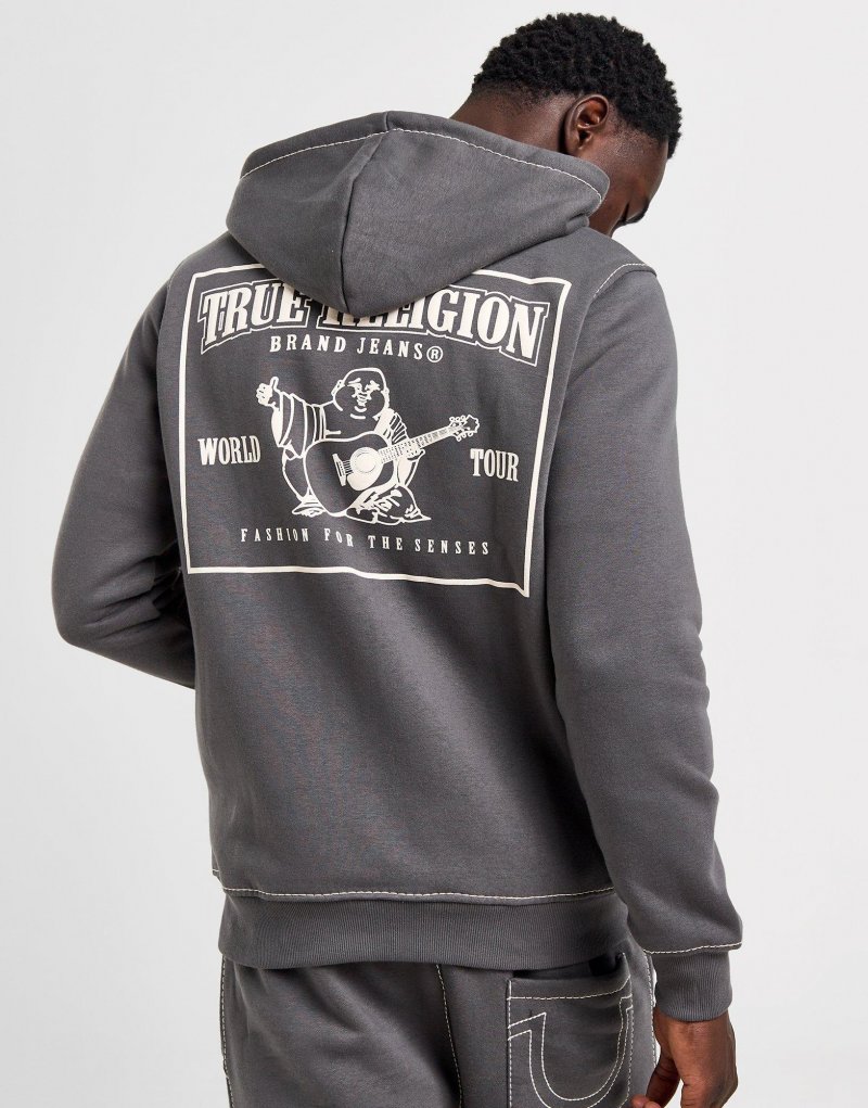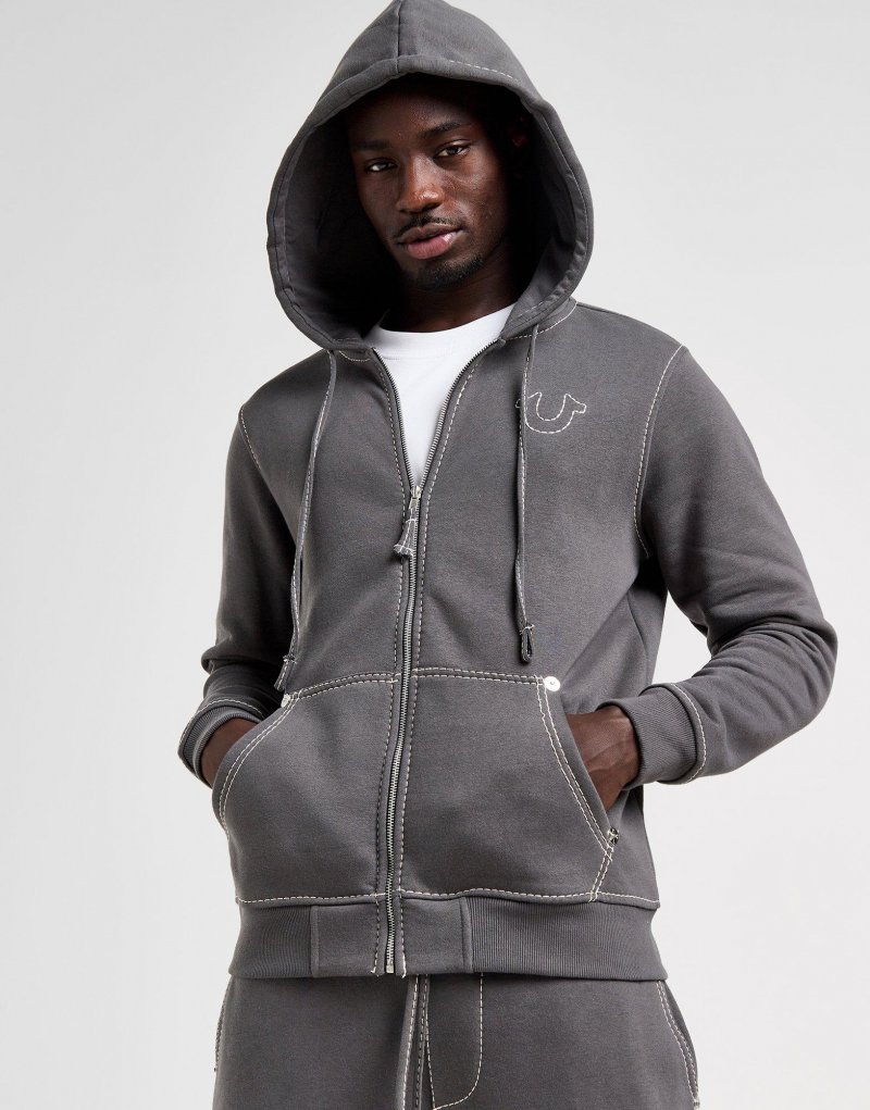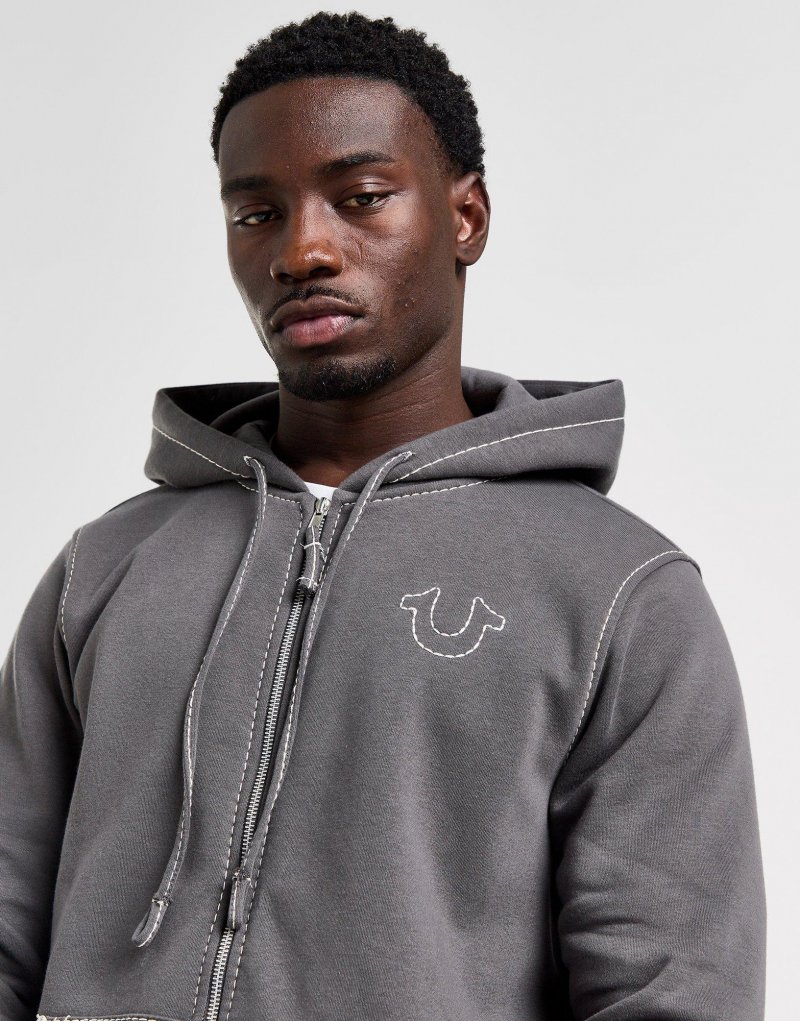 Mit dem Big T Zip Through Herren-Hoodie von True Religion sicherst du dir einen chilligen Look. Dieser Relaxed-Fit Hodie in der Farbe Iron Grey besteht aus weichem Fleece-Material und bietet absoluten Komfort. Er verfügt über einen durchgehenden Reißverschluss, eine verstellbare Kapuze mit Kordelzug und gerippte Bündchen, um die Passform zu stabilisieren. Eine geteilte Kängurutasche mit Nietendetails bietet Platz für Utensilien, während Kontrastnähte und ein auffälliges Logo von True Religion auf dem Rücken sowie das klassische Logo auf der Brust platziert ist. Waschmaschinengeeignet. Unser Model ist 1,85 m groß, hat einen Brustumfang von 91 cm und trägt Größe M.