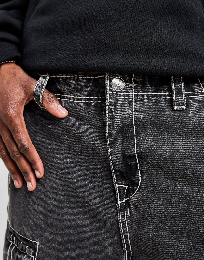 Mit den Vinny Cargo Herren-Shorts von True Religion bringst du deinen Street-Look auf ein neues Level. Diese Loose-Fit Shorts in der Farbe Black Wash sind aus glattem Baumwoll-Denim gefertigt und sorgen für maximalen Komfort im Alltag. Sie verfügen über einen Hosenschlitz mit Reißverschluss und Gürtelschlaufen für eine individuelle Passform, während Seiten- und Cargotaschen ausreichend Platz für deine Utensilien bieten. Abgerundet wird das Design durch ein aufgenähtes Logo von True Religion. Waschmaschinengeeignet Unser Model ist 1,83 m groß und trägt Größe M.