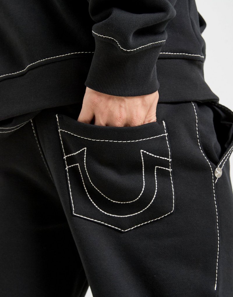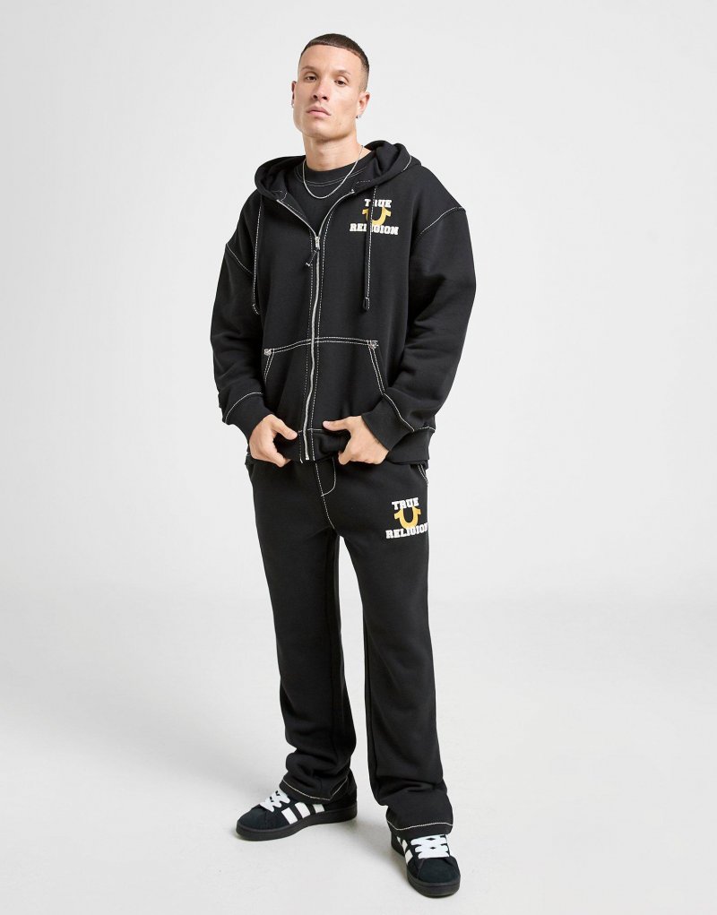 Premium. JD-exklusiv. Reay für die Streets. Sichere dir einen lässigen Look mit der True Religion World Tour Big T Jogginghose für Herren. Diese geräumige Jogginghose in Schwarz ist mit kontrastierenden Nähten und einem Hufeisen-Emblem auf der Gesäßtasche versehen. Sie besteht aus einer weichen Baumwollmischung und bietet absoluten Tragekomfort. Abgerundet wird das Design durch einer verstellbaren Bund, einsteckbare Seitentaschen und das Logo von True Religion am linken Oberschenkel. Waschmaschinengeeignet. Unser Model ist 1,83 m groß und trägt Größe M.