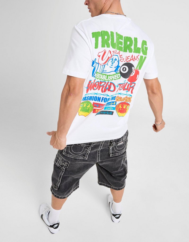 Verpasse deinem Alltagsstyle das gewisse Etwas mit diesem Herren-T-Shirt „World Tour Pool Ball“ von True Religion. Das T-Shirt in Weiß mit normaler Passform ist aus leichtem, atmungsaktivem und weichem Baumwollstoff gefertigt und bietet angenehmen Tragekomfort. Es hat kurze Ärmel, einen gerippten Rundhalsausschnitt und ist mit einem auffälligen Grafik-Branding auf Brust und Rücken versehen. Maschinenwaschbar. Unser Model ist 1,83 m groß, hat einen Brustumfang von 99 cm und trägt Größe M.