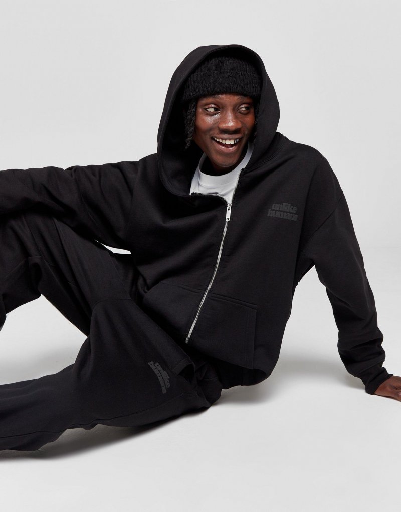 Mit diesem Bubble Zip Through Hoodie für Herren von Unlike Humans können Sie sich im JD-exklusiven Stil warm anziehen. Dieser Hoodie mit lockerer Passform in Schwarz ist aus weichem, dick geschnittenem Fleecestoff für dauerhaften Komfort gefertigt. Er verfügt über einen durchgehenden Doppelreißverschluss und eine geräumige, feste Kapuze für mehr Schutz. Er hat geräumige Ärmel mit überschnittenen Schultern für einen entspannten Look und dehnbare Rippbündchen für eine sichere Passform. Er hat eine geteilte Kängurutasche auf der Vorderseite und ist mit einem farblich abgestimmten Unlike Humans-Branding auf der Brust versehen. Maschinenwaschbar. | Unser Model ist 1,83 m groß, hat einen Brustumfang von 89 cm und trägt Größe M.