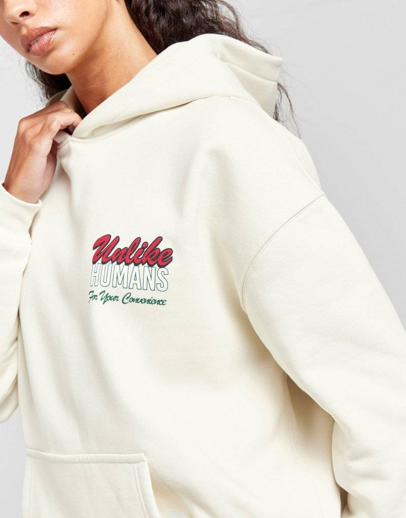 Zeit für JD-exklusiven Style mit diesem Cherry Overhead Damen-Hoodie von Unlike Humans. Dieser leicht übergroße Pullover in Beige hat überschnittene Schultern, gerippte Bündchen und eine Kängurutasche für eine einfache Aufbewahrung. Er besteht aus einer weichen, aber flauschigen Baumwollmischung, um dich warm zu halten. Abgerundet wird das Ganze durch das Logo von Unlike Humans auf der Brust und einem auffälligen Kirschmotiv auf der Rückseite. Waschmaschinengeeignet. Unser Model trägt Größe M.