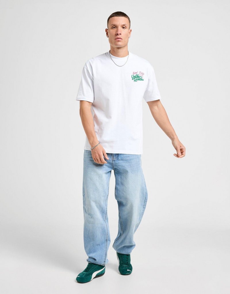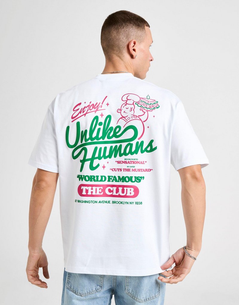 Exklusiv bei JD. Peppen Sie Ihre Basics mit diesem Club-T-Shirt für Herren von Unlike Humans auf. Das T-Shirt in Weiß mit normaler Passform besteht aus weicher, leichter Baumwolle für langanhaltenden Tragekomfort. Der gerippte Rundhalsausschnitt und die kurzen Ärmel sorgen für ein angenehmes Tragegefühl. Abgerundet wird das Design durch eine auffällige, aufgedruckte Unlike Humans-Grafik auf der Rückseite. Maschinenwaschbar. | Unser Model ist 1,83 m groß, hat einen Brustumfang von 99 cm und trägt Größe M.