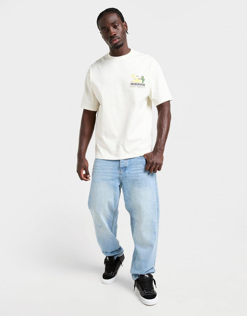 Erweitern Sie Ihre T-Shirt-Kollektion mit diesem Herren-Desert-T-Shirt von Unlike Humans. Dieses exklusive JD-T-Shirt in Beige ist aus weicher, leichter Baumwolle gefertigt und sorgt für Komfort im Alltag. Der gerippte Rundhalsausschnitt und die kurzen Ärmel sorgen für einen klassischen Look. Abgerundet wird das T-Shirt durch eine auffällige Unlike Humans-Grafik auf dem Rücken und ein charakteristisches Logo auf der Brust. Maschinenwaschbar. | Unser Model ist 1,85 m groß, hat einen Brustumfang von 91 cm und trägt Größe M.