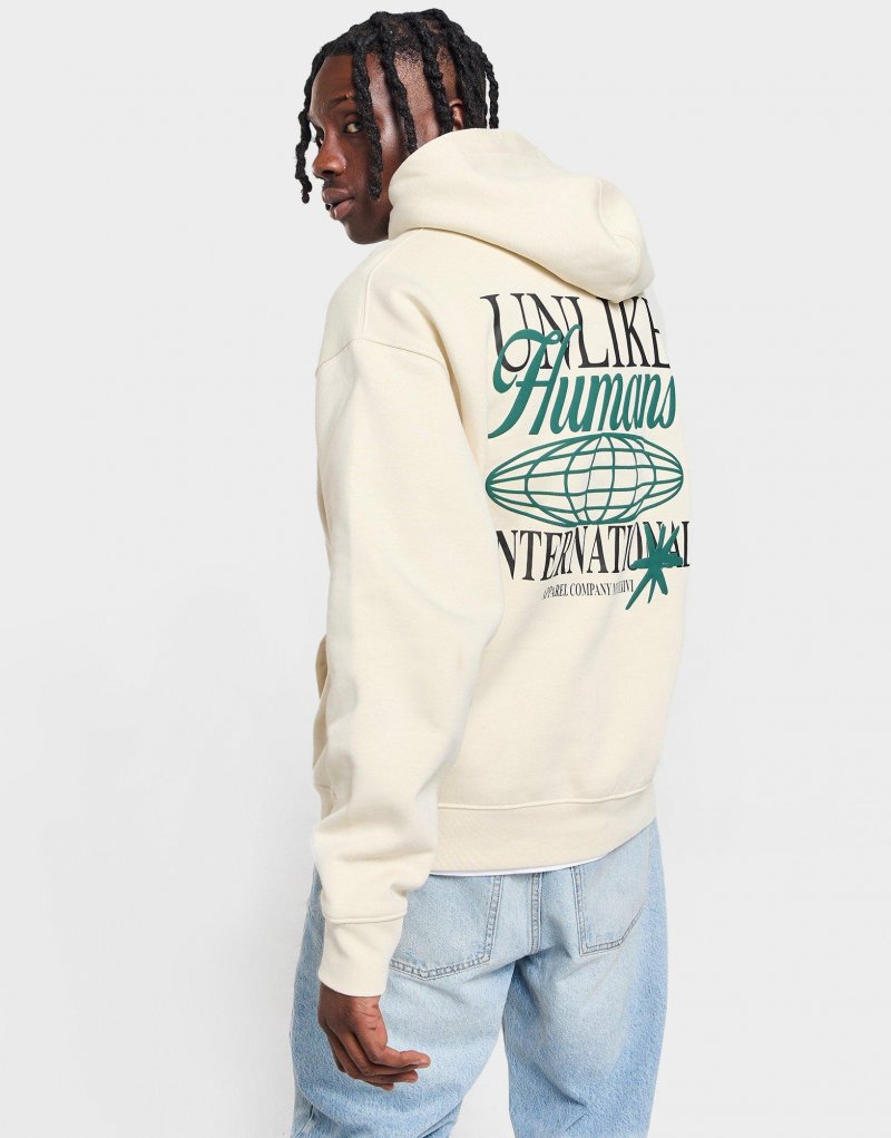 Werten Sie Ihre Freizeitkleidung mit diesem Global Hoodie für Herren von Unlike Humans auf. Dieser locker sitzende Hoodie ist exklusiv bei JD erhältlich und besteht aus weichem, dick geschnittenem Fleece in der Farbe Stone für dauerhaften Komfort. Die Innenseite ist für ein gemütliches Tragegefühl gebürstet, die feste Kapuze sorgt für mehr Schutz und lange Ärmel mit überschnittenen Schultern. Er hat dehnbare Rippbündchen für einen sicheren Sitz sowie eine Kängurutasche vorne, in der Sie Ihre Sachen verstauen können. Durchgehend mit einem auffälligen Unlike Humans-Branding versehen. Maschinenwaschbar. | Unser Model ist 1,83 m groß, hat einen Brustumfang von 89 cm und trägt Größe M.