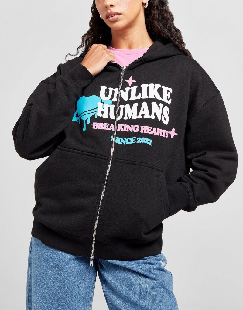 Zeit für ein Style-Upgrade mit diesem Heartbreaker Full Zip Damen-Hoodie von Unlike Humans. Der JD-exklusive Hoodie in Schwarzer ist aus weichem Baumwollmischgewebe gefertigt und sorgt für ein angenehmes Tragegefühl. Er verfügt über einen durchgehenden Reißverschluss und eine feste Kapuze, während die gerippten Bündchen für eine sichere Passform sorgen. Die Kängurutasche an der Vorderseite dient zur Aufbewahrung deiner Sachen und abgerundet wird das Design durchd ein Motiv von Unlike Humans auf der Brust versehen. Waschmaschinengeeignet. Unser Model ist 1,73 m groß und trägt Größe S.