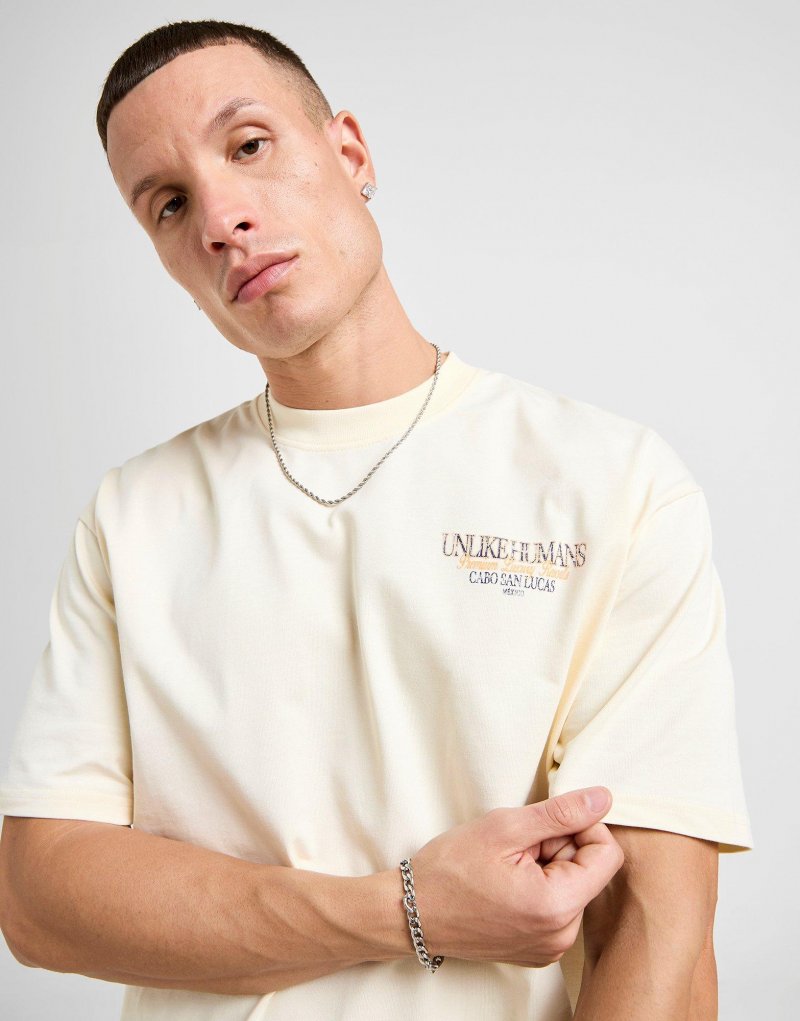 Bringen Sie frischen Wind in Ihren Alltag mit diesem Lujo T-Shirt für Herren von Unlike Humans. Dieses exklusive JD-T-Shirt in Beige besteht aus weicher, leichter Baumwolle. Es hat einen gerippten Rundhalsausschnitt und kurze Ärmel für einen klassischen Look. Es ist mit einer auffälligen Unlike Humans-Grafik auf dem Rücken und einem charakteristischen Logo auf der Brust versehen. Maschinenwaschbar. | Unser Model ist 1,83 m groß, hat einen Brustumfang von 99 cm und trägt Größe M.