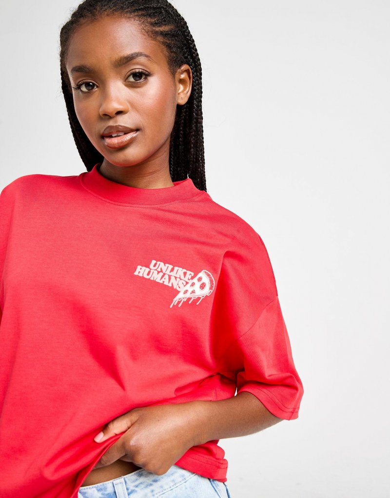 Peppen Sie Ihren Alltag mit diesem Pizza-T-Shirt für Damen von Unlike Humans auf. Exklusiv bei JD ist dieses weiche Baumwoll-T-Shirt aus weicher, leichter Baumwolle für höchsten Tragekomfort gefertigt. Es ist oversized geschnitten und sorgt für einen entspannten Look. Der klassische gerippte Rundhalsausschnitt und die kurzen, überschnittenen Ärmel runden das Design ab. Abgerundet wird das Design durch eine auffällige Unlike Humans-Grafik auf der Rückseite und ein charakteristisches Logo auf der Brust. Maschinenwaschbar.