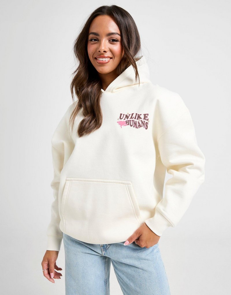 Mit diesem Damen-Overhead-Hoodie von Unlike Humans ist deine Lieblingsschicht für entspannte Tage perfekt. In der JD-exklusiven Farbe Tofu ist dieser geräumige Pullover aus Baumwollmischung für kuscheligen Tragekomfort gefertigt. Mit gerippten Abschlüssen, einer Kängurutasche und überschnittenen Schultern ist er mit dem Unlike Humans-Grafik-Branding auf Brust und Rücken versehen. Maschinenwaschbar. | Unser Model ist 1,70 m groß und trägt Größe S.