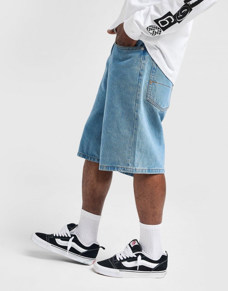Peppen Sie Ihre Basics mit den Check 5 Baggy Jorts für Herren von Vans auf. Die Shorts in Blau sind aus weichem, schwerem Denim gefertigt und bieten höchsten Tragekomfort. Sie verfügen über einen Knopfverschluss, einen Reißverschluss und Gürtelschlaufen für einen sicheren Sitz. Das klassische Fünf-Taschen-Design bietet Platz für alles Wichtige. Abgerundet wird das Design durch ein Schachbrett-Twill-Tape am Hosenschlitz und Vans-Logo-Patches auf der Rückseite. Maschinenwaschbar. | Unser Model ist 1,83 m groß und trägt Größe M.