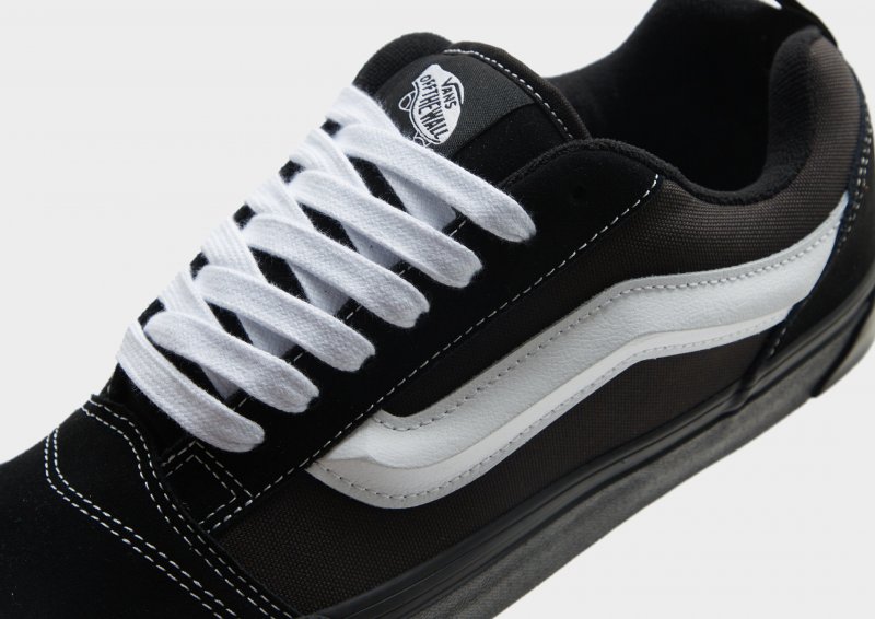 Schnapp dir den kultigen Vans-Style mit den Knu Skool Sneakern für Herren. Diese Schuhe sind in einem JD-exklusiven Schwarz mit weißen Akzenten gehalten und verfügen über ein strapazierfähiges Canvas-Obermaterial mit Wildleder-Overlays für maximalen Tragekomfort. Darüber hinaus verfügen sie über kontrastierende Schnürsenkel mit dicker Polsterung um den Kragen für einen sicheren und angenehmen Halt. Eine gepolsterten Zwischensohle sorgt für zusätzliche Dämpfung und das robustes Gummiprofil bietet erstklassigen Grip. Abgerundet wird das Design durch den legendären Sidestripe und das klassische Off The Wall-Logo.