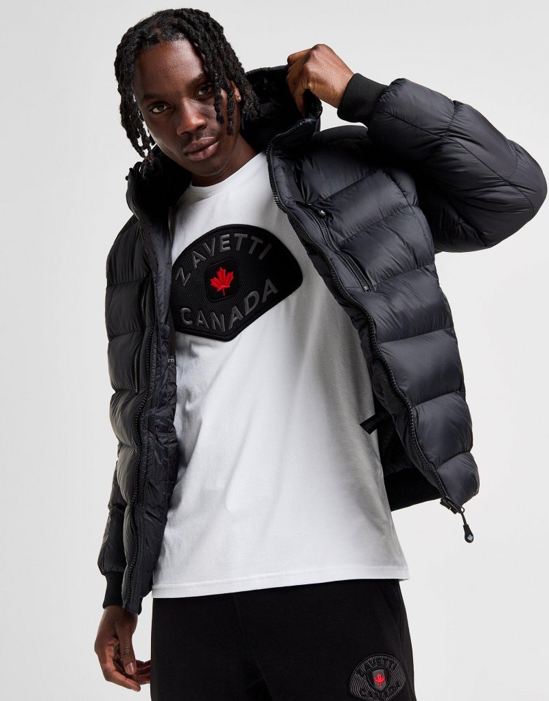 Halten Sie die Kälte draußen mit dieser Anvox Pufferjacke für Herren von Zavetti Canada. Diese Jacke in Jet Black ist in normaler Passform aus glattem, wasserabweisendem Polyester mit wattierter Synthetikfüllung gefertigt, damit Sie es schön warm haben. Sie verfügt über einen durchgehenden Reißverschluss und eine verstellbare Kapuze für Schutz, während gerippte Bündchen die Form halten. Sie hat Reißverschlusstaschen an den Seiten und auf der Brust für sichere Aufbewahrung und ist mit dem charakteristischen Zavetti Canada-Logo versehen. Maschinenwaschbar | Unser Model ist 1,83 m groß, hat einen Brustumfang von 89 cm und trägt Größe M.