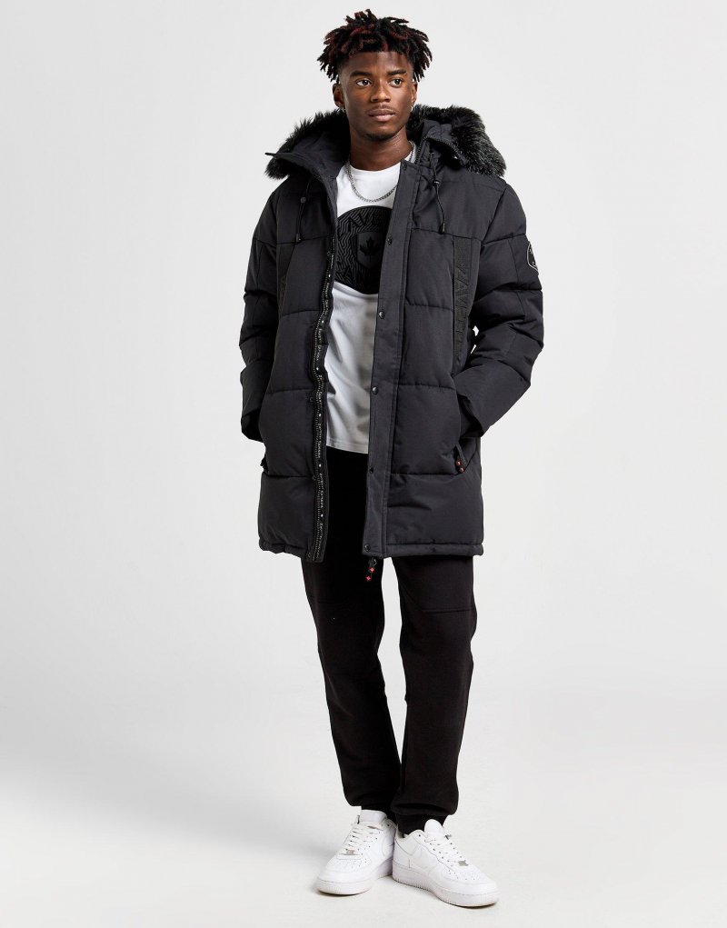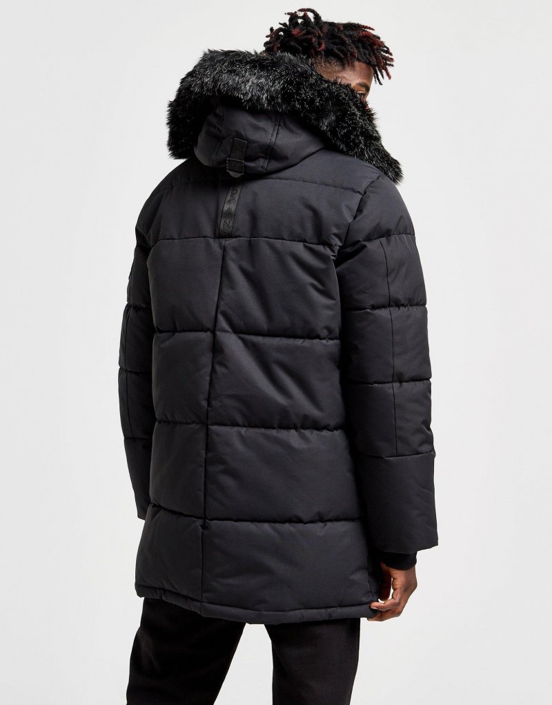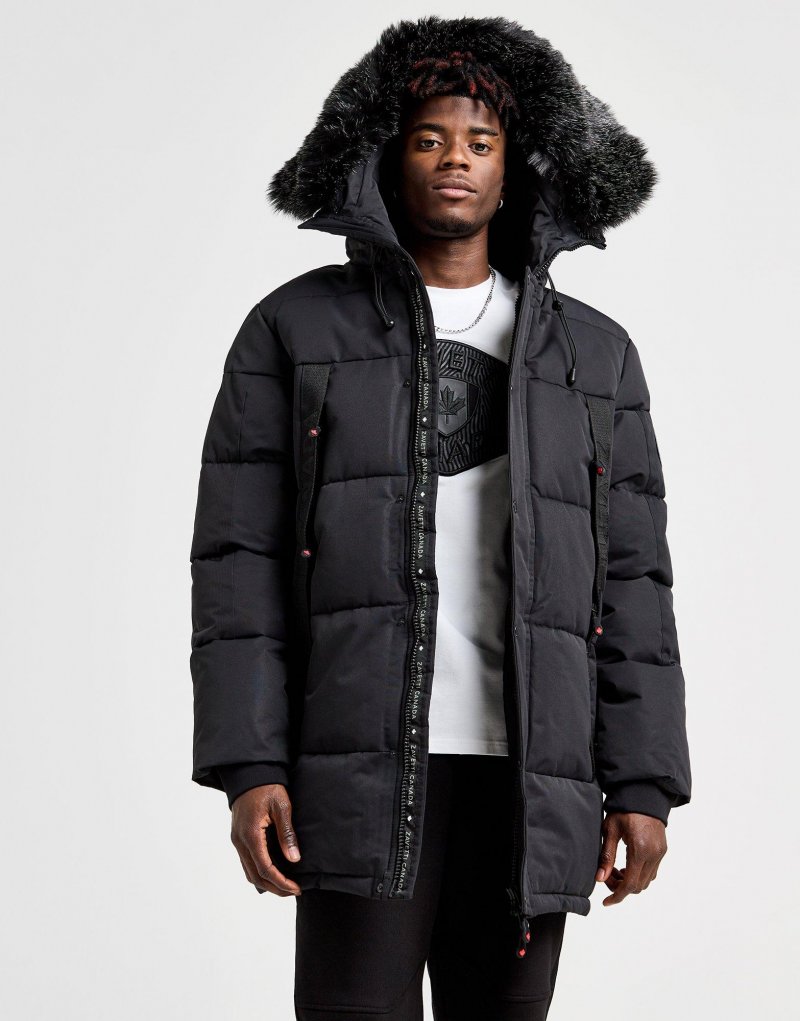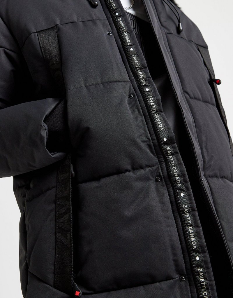 Trotze den Elementen mit der Aylmer Longline Parka Herrenjacke von Zavetti Canada. Diese Standard-Fit Jacke in Schwarz besteht aus glattem, strapazierfähigem Polyestergewebe und bietet dauerhaften Tragekomfort. Sie verfügt über eine weiche Synthetikfüllung, um die Wärme zu speichern, einen durchgehenden Reißverschluss, eine Sturmklappe mit Druckknopf sowie eine Kapuze mit Kunstpelzbesatz für noch mehr Schutz. Außerdem sorgen die dehnbaren, gerippte Innenbündchen für eine sichere Passform, während die Taschen eine einfache Aufbewahrung ermöglichen. Das klassische Logo von Zavetti Canada verleiht dem Design einen runden Abschluss. Waschmaschinengeeignet. Unser Model ist 1,80 m groß, hat einen Brustumfang von 97 cm und trägt Größe M.