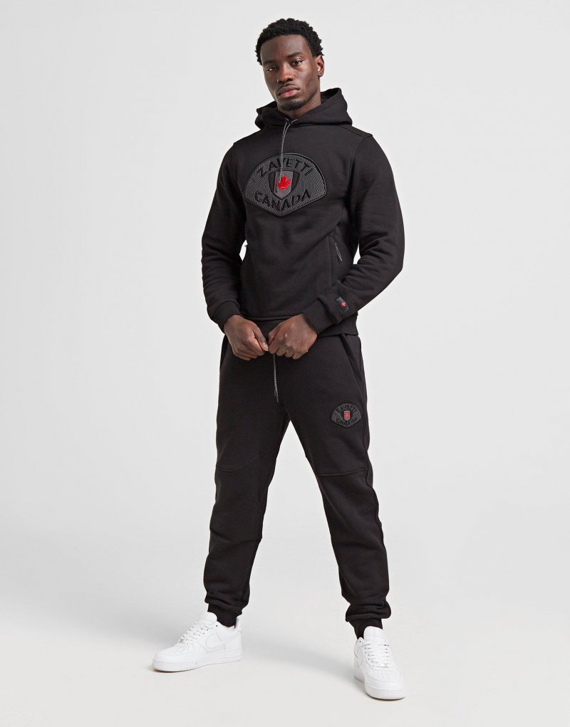 Bring deinen Alltags-Look auf ein neues Level mit dieser Camacco Herren-Jogginghose von Zavetti Canada. Diese schmal zulaufende Hose in Schwarz besteht aus einem weichen Baumwoll-Polyknit und sorgt für ein weiches, bequemes Tragegefühl. Darüber hinaus verfügtsie über einen Kordelzug am Hosenbund für eine individuelle Passform, während die Bündchen am Beinende eine sichere Passform gewährleisten. Die Seitentaschen bieten Platz für deine Utensilien und das klassische Ahornblatt-Logo befindet sich am linken Oberschenkel und auf der Rückseite. Waschmaschinengeeignet. Unser Model ist 1,83 m groß und trägt Größe M.