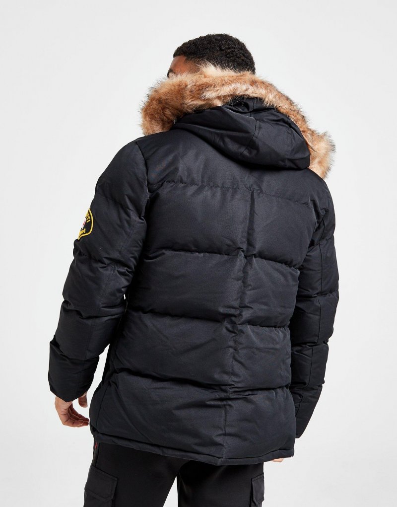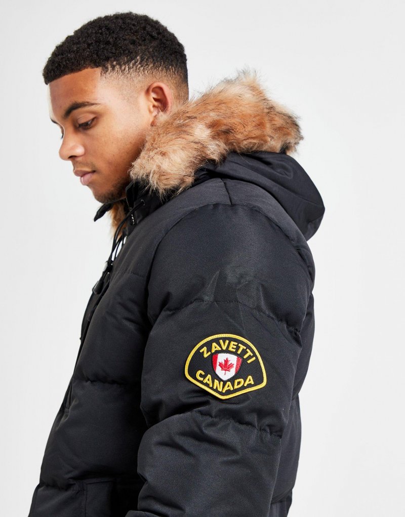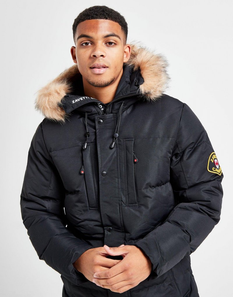 Trotze der Kälte mit der Oshawa Parka Herrenjacke von Zavetti Canada. Diese schwarze Jacke besteht aus glattem, strapazierfähigem Polyestergewebe und bietet erstklassigen Tragekomfort. Sie verfügt über eine leichte Synthetikfüllung, die die Wärme einschließt, und einen durchgehenden Reißverschluss mit Druckknopf-Windschutzklappe. Die verstellbare Kapuze mit Kunstpelzbesatz ermöglicht einen individuellen Look, während die Reißverschlusstaschen an der Vorderseite Platz für deine Utensilien bieten. Abgerundet wird das Design durch ein Zavetti-Logo am Ärmel. Waschmaschinengeeignet. Unser Model ist 1,85 m groß, hat einen Brustumfang von 99 cm und trägt Größe M.