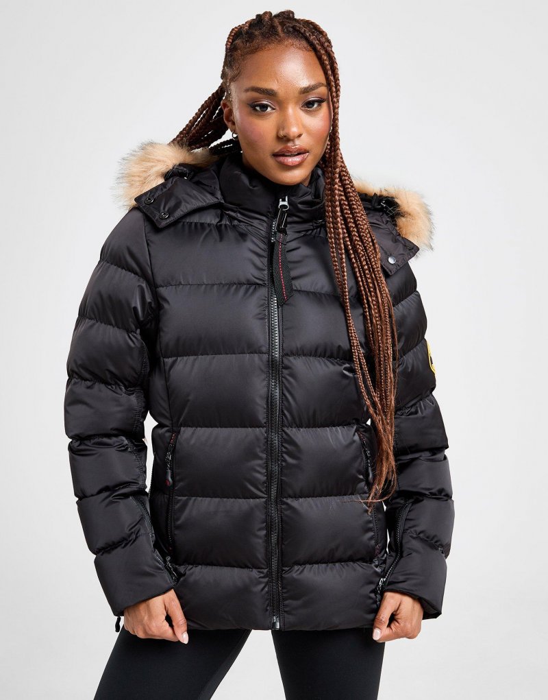 Trotze den kalten Bedingungen mit der Zavetti Canada Virna Slim Pufferjacke für Damen. Diese Slim-Fit Jacke in Schwarz ist aus leichtem, wasserabweisendem Polyester gefertigt und mit recyceltem Polyester gefüttert, um dich warm zu halten. Sie verfügt über einen durchgehenden Reißverschluss und eine mit Fell gefütterte Kapuze für einen individuellen Look, während gerippte Bündchen die Passform stabilisieren. Außerdem dienen die Reißverschlusstaschen an der Seite zur Aufbewahrung. Abgerundet wird das Design durch das klassische Zavetti-Logo. Waschmaschinengeeignet. Unser Model ist 1,68 m groß und trägt Größe S.